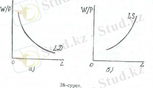 артырады. Сондықтан еңбекті ұсыну қисық сызығы (38, б-суретте) еңбекке сүранысқа қарағанда басқа түрде көрінеді.