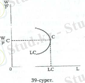 39-суретте жұмыс уақытының жалпы санын көрсететін қисық сызық берілген. Осы уақытта жалақы мөлшеріне қандай да болмасын еңбекші тобы жүмыс істеулері керек. Бұрын келтірілген еңбекті ұсыну сызығынан мүның ерекшелігі өзінің конфигурацияларында жатыр.
