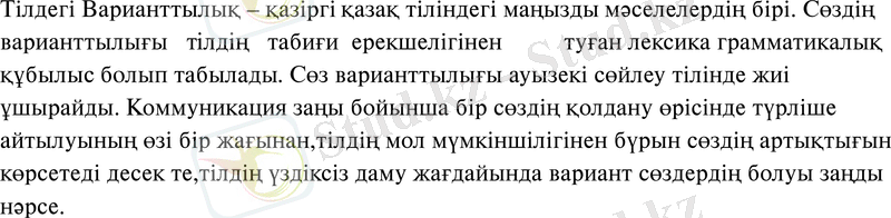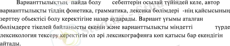 - варианттылық тілдік норманың тұрақты табиғи құбылысы екенін дәлелдеу