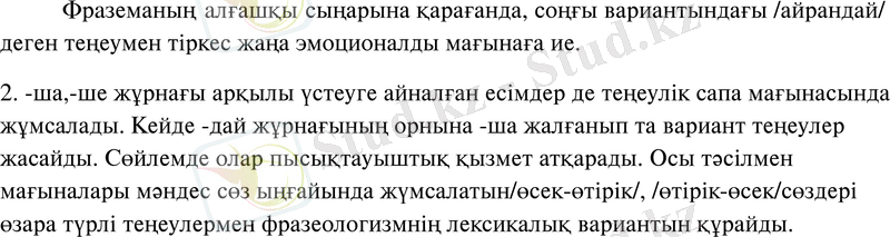 Алайда варианттылық қүрылым фразеологизмнің жалпы