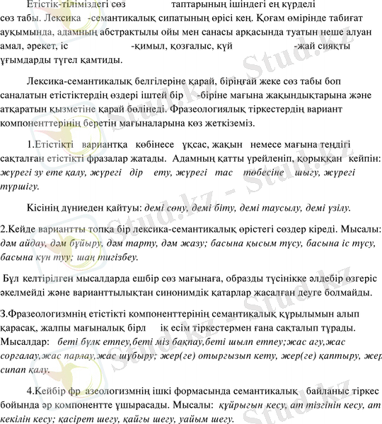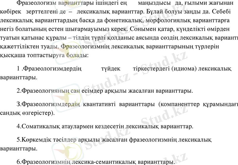 І. ФРАЗЕОЛОГИЗМДЕРДІҢ BАРИАНТТЫЛЫҒЫ, ОЛАРДЫҢ ПАЙДА БОЛУЫ