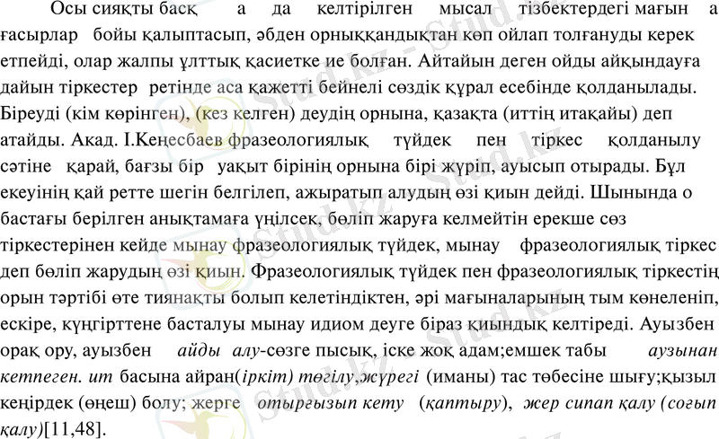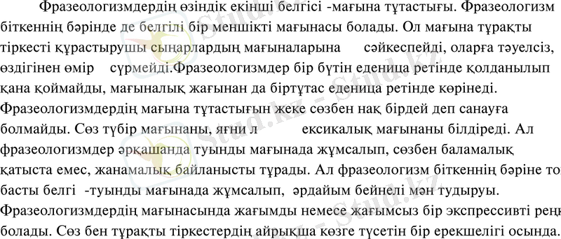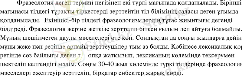Сөз мағынасы, сөйлем сазы туралы сөз етсек, фразеологизмдердің жалпы тіл жүйесіндегі орны ерекше екені кез келген тұрақты сөз тіркесінен