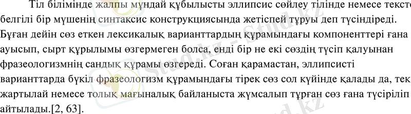 5. Қарғыс мәнде айтылатын фразеологизмдерде кейде жеке компоненттерінің түсіп қалуынан да эллипсисті варианттар жасалған. Мысалы:жетпей желкең қиылгыр-желкең қиылгыр; тіліңді тәңір кессін-тілің кесілсін.