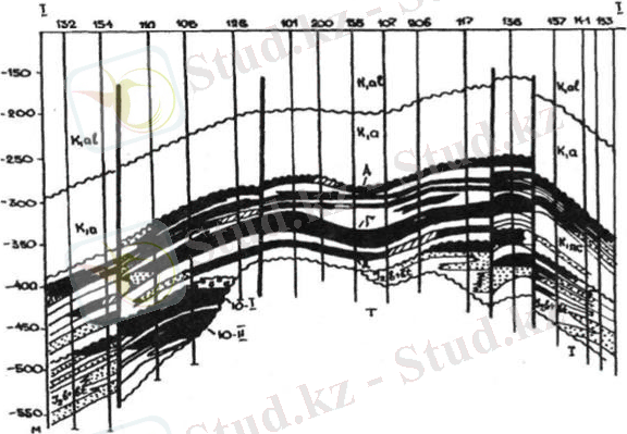 Cуpeт 1. 2. 1 - I-I жeлici бoйыншa гeoлoгиялық қимa