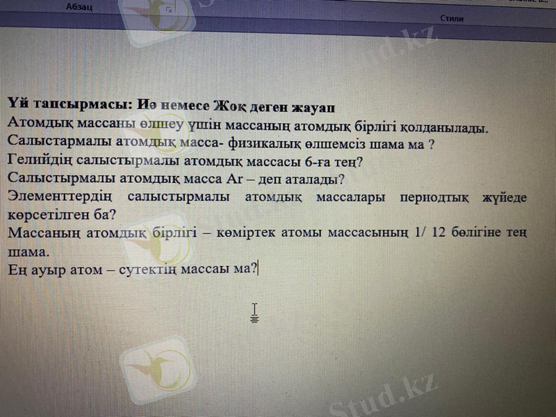Сурет 7. Үй тапсырмасына қосымша сұрақтар.
