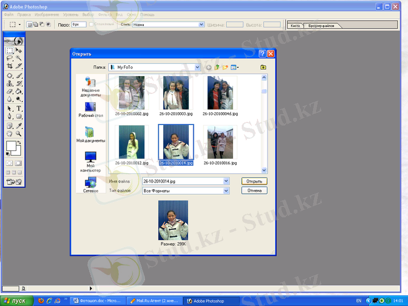 Терезеде файлдар тізімі беріледі. Бұл терезеден бір файлды ашу үшін Открыть командасын басамыз.