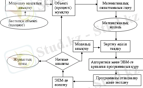 1-суретте компьютерлік математикалық моделдеу процесінің жалпы схемасы көрсетілген