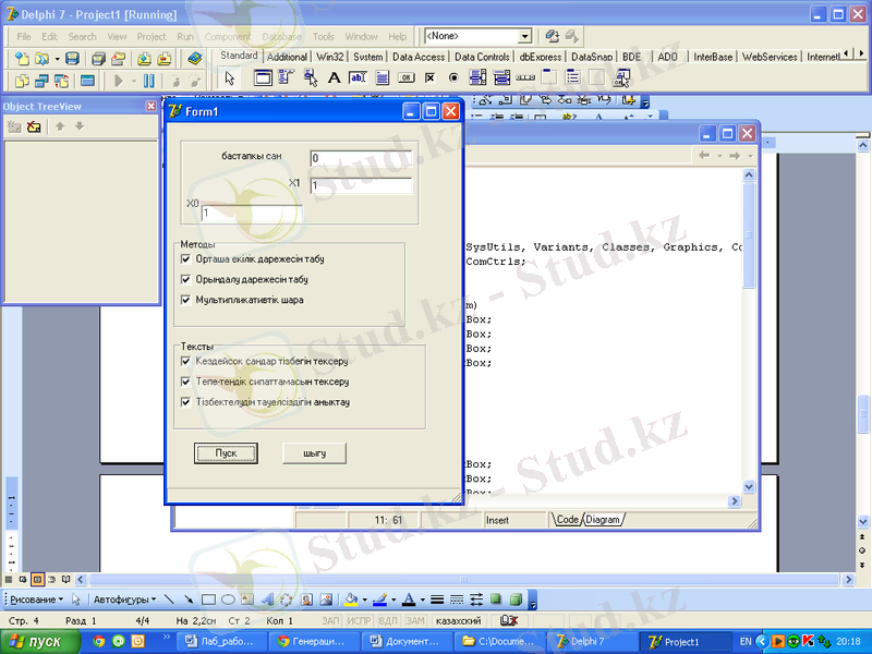 Алдыңғы жұмыста жасалған кездейсоқ сандар генераторын қолданып, төменгі блок-схемаға сәйкес Delphi ортасында қосымша жасау керек. Қосымша кездейсоқ тізбектің периоды мен апериодылығының ұзындығын анықтау тиісті.
