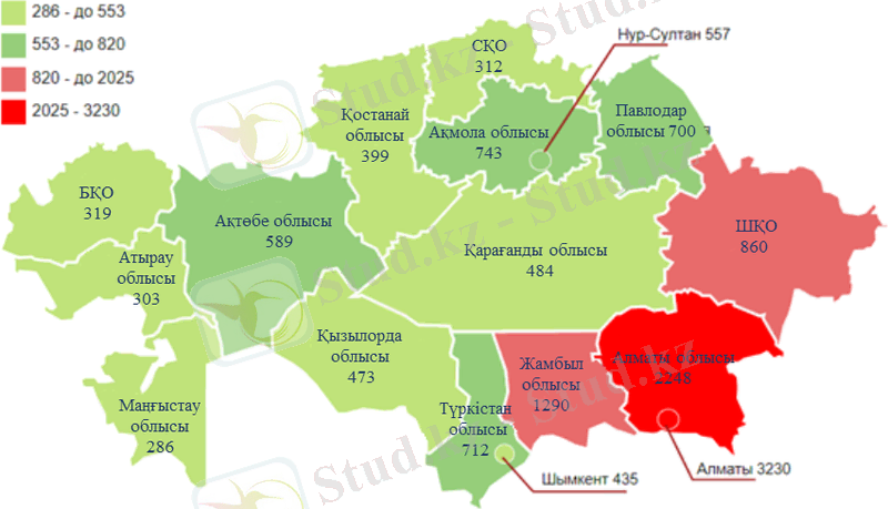 Көрсетілген бағалау критерийлері бойынша ең елеулі өсім Алматы облысы (+22 және 2, 3%), Шығыс Қазақстан облысы (+34 және -12%) және Жамбыл облысында (+35 және 39%) болды.
