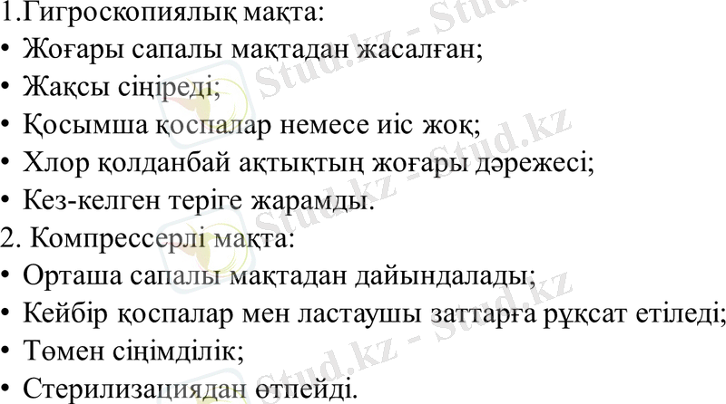* Мақта талшығынан жасалған гигиеналық мақта.