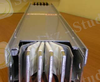 суреттегі - қорғаныс металл қораптары бар ашық шиналық өткізгіштер: а-троллей шиналық өткізгіші; б-көпірлі кранға арналған шиналық өткізгіші