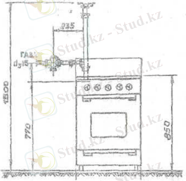 Газды аспаптар тұрғын үйлердің асханада және топкада орналасқан. Сондықтан да асхананың биіктігі 2, 75 м, ал көлемі 15 м 3 болатын төрт оттықты газ плиталы қондырғысы тұр.