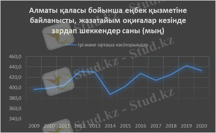 Алматы қаласында өнеркәсіптердің ілгеріленуіне және әртараптандырылуына байланысты өндірістегі жазатайым оқиғалардың жиілігі біртіндеп артып келеді. Өндірістегі жазатайым оқиғалардың алдын алу саясатын құрудың маңызды көрсеткіші болып табылатын, жазатайым оқиғалардың деңгейі өндірістік жазатайым оқиғалардың себептерін талдауда төмен сенімділік пен шектеулерге ие екендігі атап өтілді. Бұл зерттеуде біз Алматы қаласында өндірістік жазатайым оқиғаларды жіктеу жүйесін салыстырып, талдадық. Өндірістік жазатайым оқиғалардың статистикасы оқиғалардың алдын алу саясатын құрудың маңызды көрсеткіші болғанымен, өндірістегі жазатайым оқиғалар статистикасының сенімділігі төмен және масштабты анықтау үшін жазатайым оқиғалардан сақтандыру деректерін пайдалану арқылы өндірістік жазатайым оқиғалардың себептерін талдауда шектеулер бар екендігі атап өткен жөн. Жыл сайынғы өндірістік жарақат алу деңгейі статистикалық мәліметтерге сүйенсек көтеріліп келжатқандығын көреміз. Ал мемлекеттік мекемелердің еңбек инспекторларының Алматы секілді ірі қаланы қамту өте қиынға соғуы мүмкін. Еңбекті қорғау және техникалық қауіпсіздік саласының міндеті жоғарыда айтып өткеніміздей қызметкерлердің еңбек барысында қауіпсіздігі мен денсаулығын сақтау секілді шараларды қамтиды. Неліктен зерттеуге қатысты мысал ретінде мәліметтер қатарына Алматы қаласы таңдалды? Еліміздегі ірі, дамушы, миллиондаған халқы бар мегаполис қала болғандықтан. Сонымен қатар, қалада құрылыс, өндірістік фабрика, зауыттар және де түрлі басқада салалар өте жоғарғы, қарқынды темпте даму үстінде. Ал көптеген өндірістік жарақат алу, апаттар саны да аз емес. Қазіргі уақытта актуалды мәселелердің бірі болып саналатын ж ергілікті инспекциялық басқармаларда өзіміздің тәжірибеміз бойынша байқалғаны мемлекеттік инспекторлардың, кәсіби кадрлардың жетіспеушілігі. Ал кадр жетіспеушілігі өте көп кейстердің шешілу мерзімінің ұзақтығына және де статискалық көрсеткіштің өсіміне әкеліп соғатыны анық. Алматы қаласы бойынша Ұлттық статистика бюросының нақты мәліметіне сүйене отырып, біршама статистикалық зерттеулер қатары ұсынылады. Зерттеу бойынша ең бірінші туындайтын сұрақтардың реті Алматы қаласы бойынша еңбек қызметіне байланысты, жазатайым оқиғалар кезінде зардап шеккен жалпы адамдар саны қаншаны құрайды? Соңғы 12 жыл көлеміндегі жалпы көрсеткіш деңгейі қанша?