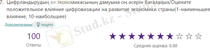 Жетінші сұрақта цифрландырудың экономикаға оң әсері 6. 88 баллды құрады.