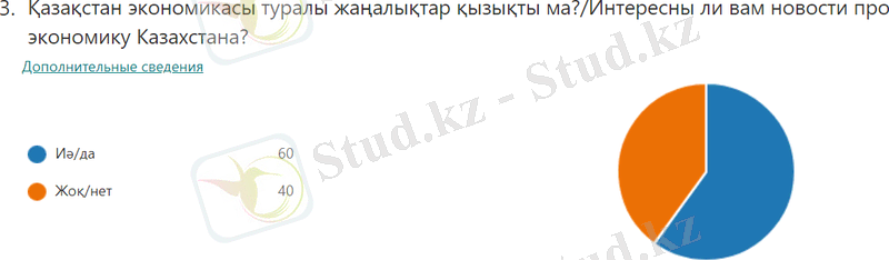 Келесі сұрақта олар экономика саласындағы жаңалықтарға қызығушылық таныта ма деп сұрады, онда 60-ы оң жауап берді, ал қалған 40-ы теріс жауап берді