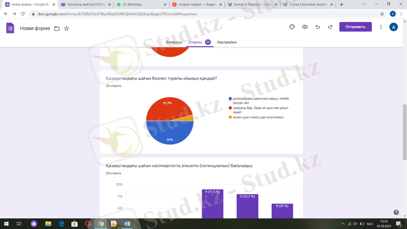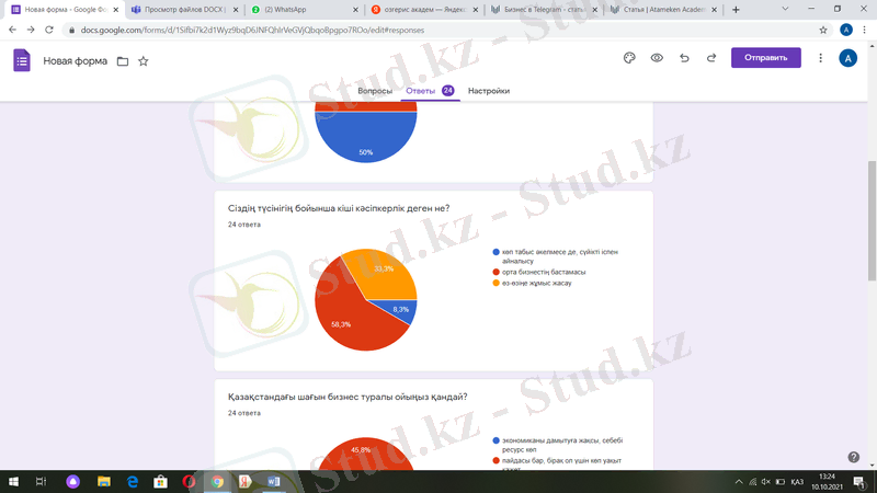 - Қоғам арасында онлайн сауалнама жүргізіп, адамдардың шағын бизнеске қатысты ой-пікірлерін анықтау, қазіргі таңдағы әлеуеті мен перспективаларын болжау;