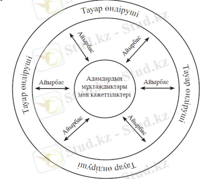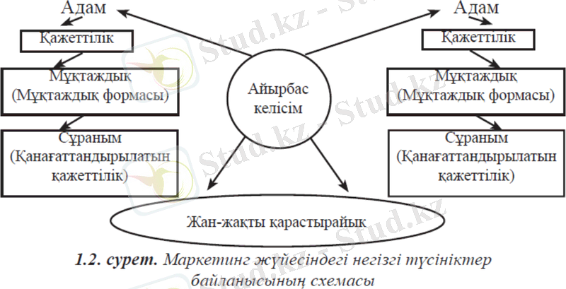 Котлердің пайымдауынша, маркетинг дегеніміз - айырбас жолымен мұқтаждықтар мен қажеттіліктерді қанағаттандыруға бағытталған адам қызметінің бір түрі ( сурет 2 ) .