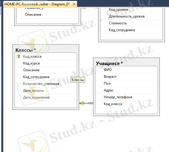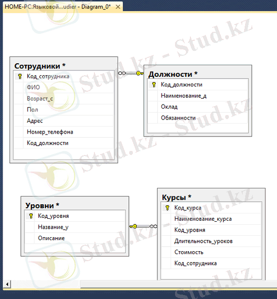 «Тілдер курсы» деректер базасы «Клиент-серверлік ақпараттық жүйелерді құру» пәні негізінде жүзеге асырылады.