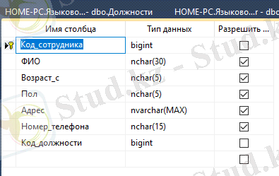 “Сотрудники” кестесі жалпы қызметкерлер жайлы ақпараттарды сақтайды. 5-суретте " Сотрудники " кестесінің құрылымы көрсетілген.