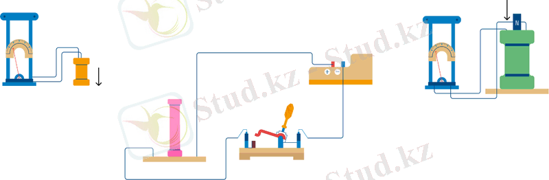 Тәжірибе уақыты. Бір өткізбейтін негізге екі катушкалар оралған: бірінші орамның бұрылыстары екіншісінің бұрылыстарының арасында орналасқан. Бір катушканың бұрылыстары гальванометрге жабылды, ал екіншісі ток көзіне қосылды.