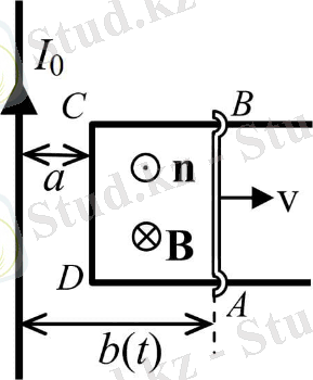 1-тапсырма (негізгі тапсырма) . Бір жазықтықта ток өтетін ұзын түзу сым және ұзындығы АВ болатын жылжымалы секіргіші бар П-тәрізді ABCD өткізгіші орналасқан. Тізбектің CD жағы өткізгіштен a қашықтықта орналасқан. Секіргіш берілген тұрақты жылдамдықпен қозғалады (2-сурет) . Табу керек: