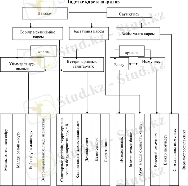 Індетке қарсы шаралар кешенінде ұйымдастыру-шаруашылық мәселелері маңызды орын алады. Өйткені, малды дұрыс бағып-күткенде, оның жайылым өрісін, азықтандыру мен су ішуін, қора-жайын тиісті талаптарға сай жолға қойғанда ғана аурудың шығуына және таралуына жол бермеуге болады. Малды өз төлінен өсіру, мал басын толықтыру ветеринариялық талаптарға сай жүргізілуі керек. Аталған шаралар - мал шаруашылығын дұрыс жургізудің міндетті шарттары болып табылады.