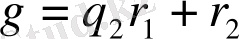 Енді бірінші теңдіктегі r 1 -дің мәнін екінші теңдікке қоямыз: r 2 = g - q 2 r 1 = g - q 2 ( f - q 1 g ) = g - q 2 f + q 1 q 2 g = - q 2 f + (1 + q 1 q 2 ) g .