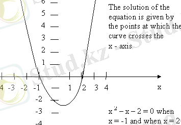 Eg. Solve the equation x2 - x - 2 = 0 by drawing the graph of y = x2 - x - 2