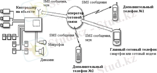 Сурет 1. 1 - SMS арқылы GSM-күзет жүйесінде дабыл сигналын беру схемасы