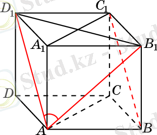 Ең алдымен берілген призманы төртбұрышты призмаға дейін толықтырайық. AD 1 қабырғасын BC 1 - ге параллель болатындай етіп жүргіземіз. Ізделінді бұрыш B 1 AD 1 бұрышының шамасына тең болады. AB 1 D 1 үшбұрышында (Пифагор теоремасы бойынша) : АВ 1 = АD 1 = , B 1 D 1 = . Косинустар теоремасы бойынша cosφ = . φ =arccos .