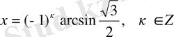 теңсіздігінің шешімі кесіндісіндегі у= функциясының графигі у= түзуінің графигінен жоғары орналасқан немесе графикті қиятын х айнымалысының барлық мәндері, яғни кесіндісі. у= функциясының периоды 2π-ге тең болғандықтан, табылған шешімдерге сандарын қоссақ, берілген теңсіздіктің қалған шешімдері табылады. Демек, теңсіздігінің шешімі , .