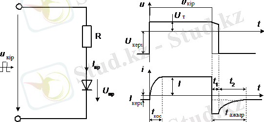 Диодтың жабық қалпынан ашық қалыпқа ауысуы лезде жүрмейді. Егер диодқа жоғарғы жиілікті тік бұрышты формадағы кернеу қойса, бұл құбылысты осциллограф экранынан бақылауға болады (1. 2 сурет) .