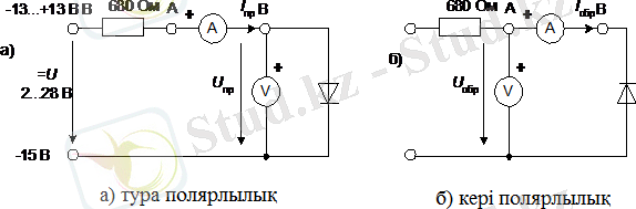 1. Түзеткіш диодтың (КД226, 1N5408 типті), импульсті диодтың (КД521, 1N522, 1N4148), Шотки диодының (1N5819) вольт-амперлік сипаттамаларын зерттеу.