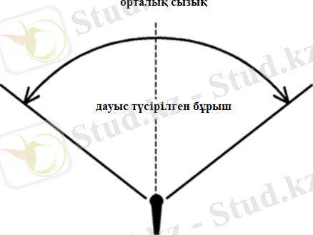 Бір бағытты микрофондар үшін (кардиоид, суперкардиоид және т. б. ) орталық сызық арасындағы бұрыш (суретті қараңыз) және микрофонның тиімділігі айтарлықтай төмендейтін нүкте (айырмашылық 3 дБ-ға жетеді) дыбыс шығару бұрышының жартысы болып саналады. Кардиоидты микрофонның әдеттегі көрсеткіші-131° (орталық сызықтың екі жағында 65. 5°), микрофонның басқа түрлері үшін мәндер: