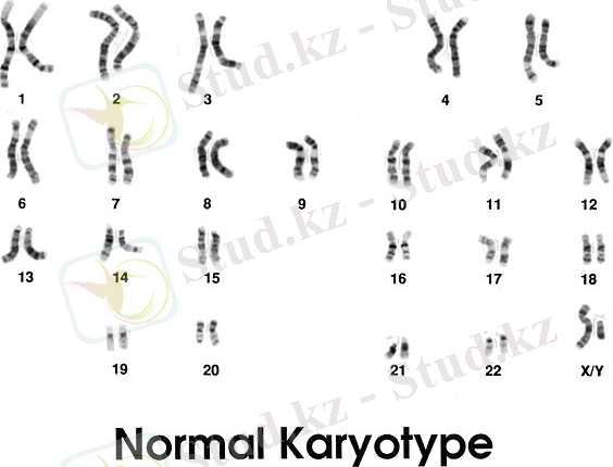 Нормальный мужской кариотип. Представлены 23 пары хромосом: 22 пары аутосом с парой половых хромосом X и Y .