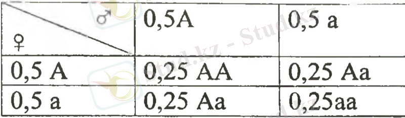 арақатынасы 0, 5 А : 0, 5 а емес 0, 8 А : 0, 2 а болып келеді. Будандасудың нәтижесінде олардан мынандай комбинация түзеді: