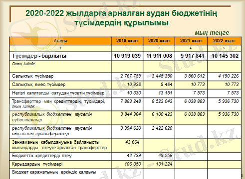 Сіздердің назарларынызға 2020 ─ 2022 жылдарға арналған азаматтық бюджет ұсынылып отыр, оның ішінде аудандық бюджеттің негізгі көрсеткіштері, олардың параметрлері және бюджеттік қаражаттарын жұмсау бағыты көрсетілген.