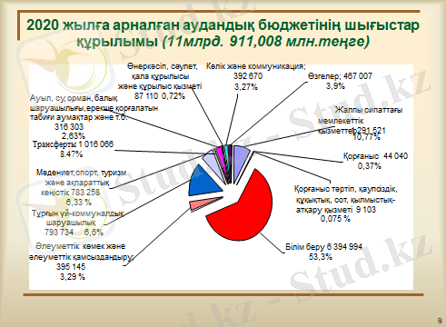 - әлеуметтік қамтамасыз ету және әлеуметтік қорғау, мәдениет, білім беру, денсаулық сақтау салаларын қаржыландыру.