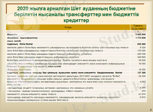 - трансферттер түсімі (облыстық бюджеттен трансферттер түсімдері) бойынша талдамалық ақпарат көрсетіледі.