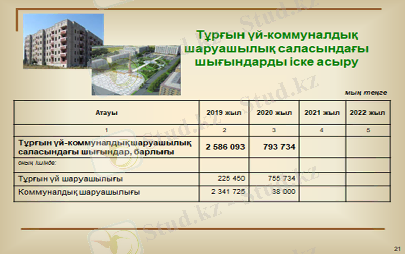 Тұрғын үй-коммуналдық шаруашылық саласындағы шығындарды іске асыру