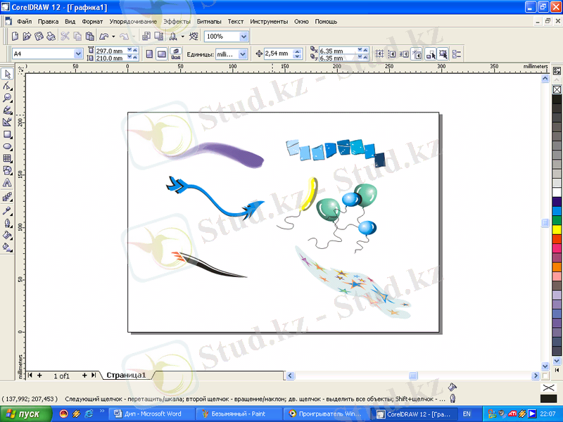 сурет. Corel DRAW 12 бағдарламасының жұмыс терезесі.