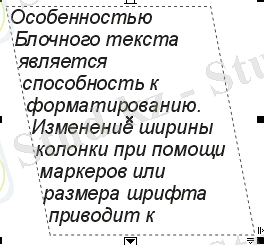 Оның негізгі маркерін тышқанмен таңдап, орнын ауыстырамыз. Блочный мәтіннің жол аралық аймағы және бәсеңді құрал мен Pick Tool құралымен де реттеледі және Text Tool құралы арқылы мәтін енгізіледі. Реттеуді аналогиялық маркерлермен де орындауға болады. Ол мәтін енгізілген рамканың төменгі оң жақ бұрышында. Мәтіннің негізгі нүктесін Shape Tool (Пішінін өзгерту) құралымен таңдаған кезде, атрибут панелі жеке символдардың параметрлерін өзгертуге мүмкнішілік береді. Осы кезде атрибут панелі өзгереді және қосымша мүмкіншіліктері көрсетіледі.