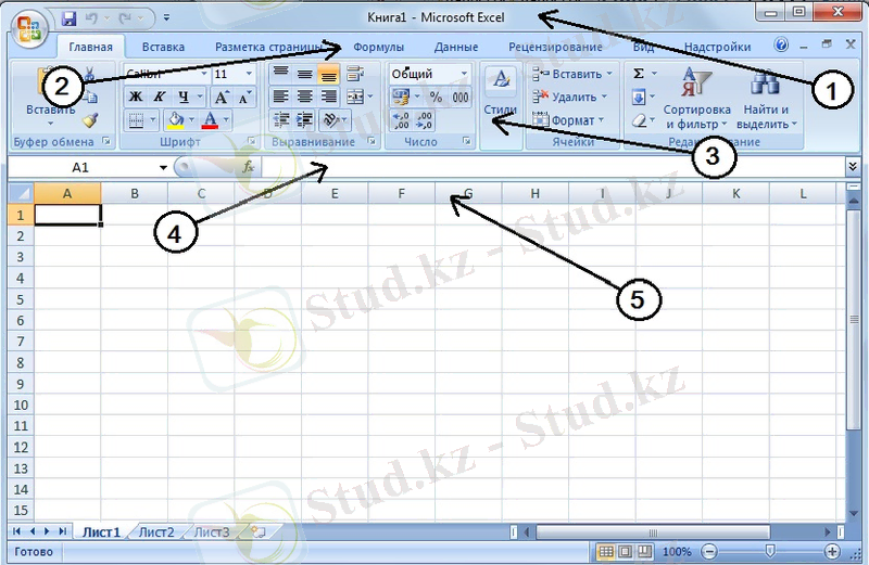 Excel терезесі төменгі қатарлардан тұрады: