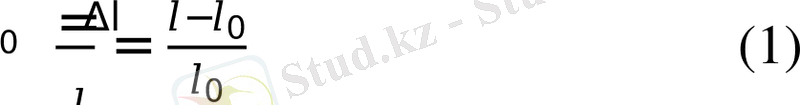 мұнда, l 0 және l - дененің созылғанға дейiнгi және одан кейiнгi ұзындығы, сәйкесінше Δ l - абсолюттi ұзару. Ығысу деформациясы Р кернеуінің әсерінен болған салыстырмалы ығысумен анықталады: