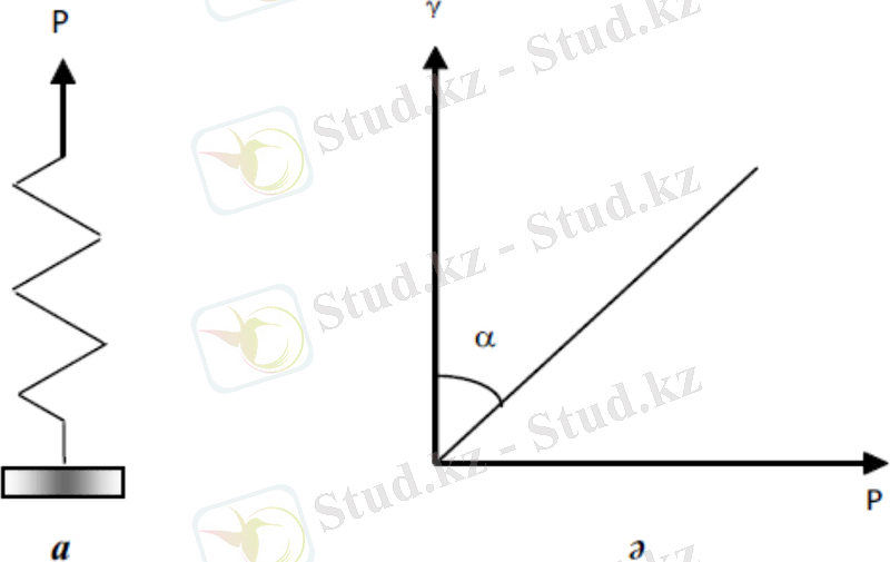 1-сурет. Идеал серпімді Гук денесiнiн үлгiсi (а) мен осы үлгi деформациясының күш кернеуiне тәуелдiлiгi (ə)