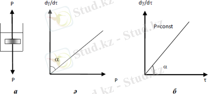 γ'=f (P) қисығының координаталар басынан шығатын түзу Ньютон заңына сәйкес екені анык. Мұнда, dγ/dτ oсi жағындағы көлбеудін тангенс бұрышы η-қа тен, ал Р осі жағындағы тангенс бұрышының шамасы аққыштыққа 1/h тең (2 ә-сурет) . Ньютон суйықтықтарының тұтқырлығы жүктемеге тәуелсіз.