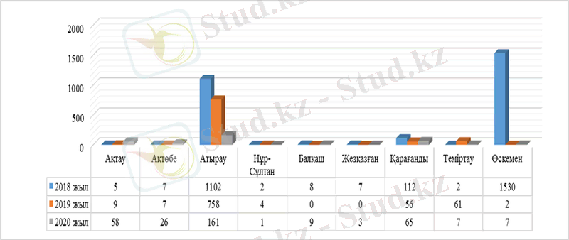 4-сурет. 2018-2020 жылдардағы Қазақстан қалаларында ЖЛ жағдайларының саны, бірл.