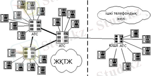 Осылайша, қарама-қарсы ішкі телефон желілері пайда болады. Ішкі телефон желілерінің өздері бірнеше шағын АТС-те салынуы, үлкен аумақты қамтып, күрделі ішкі топологияға ие болуы мүмкін. Ішкі желілердің ЖҚТЖ ден басты айырмашылығы-олар ЖҚТЖ -ден ерекшеленетін өздерінің нөмірлік жоспарларын қолдайды. Тағы бір маңызды айырмашылық: ЖҚТЖ Үкімет пен жергілікті телефон компанияларымен бақыланады, ал ішкі желілер негізінен олардың иелеріне ғана бақыланады. "Шағын АТС"-ға ең жақын ағылшын тіліндегі термин - PBX (Private Branch Exchange, "пайбекс"деп аталады) . Қазіргі уақытта бұл термин іс жүзінде кездеспейді, өйткені АТС-ті автоматты және автоматты емес деп бөлу бұрыннан өзектілігін жоғалтты[3] .