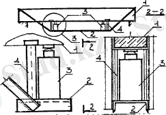 Тірек алаңының құрылысы. Көпір краны инвентарлық төмен тірек алаңын орнату үшін тірек құрылымы ретінде қолданылады (сурет. 8 в) жұмыс төсенішімен жабдықталған. Тірек алаңы көпір кранының жоғарғы белдеуіне орнатылады.