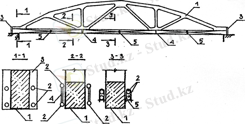 Сымдардың өзекшелерін анкерлеу фермалардың ұштарындағы тірек тораптарында орындалуы тиіс, аралық тораптарда алдын ала кернеуден кейін сымдардың өзектерінің жағдайы дәнекерлеуде арнайы қысқыш-бекіткіштердің көмегімен бекітілуі тиіс. (5, 76 бет)